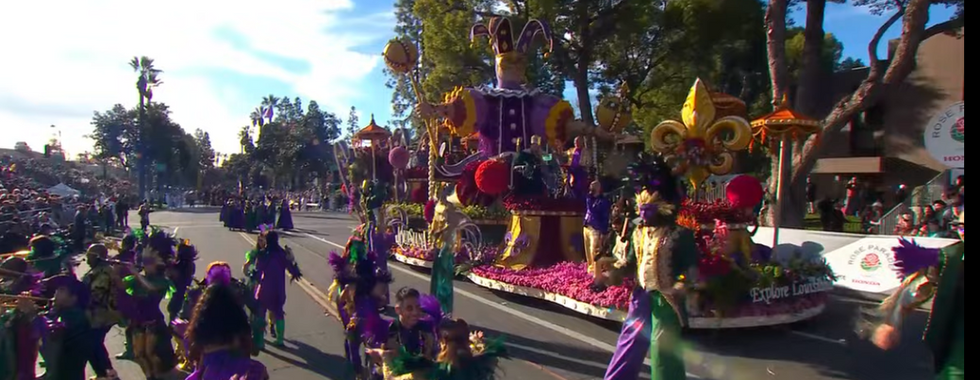 What an honor to be a part of the @rose_parade 2024 for the mid day performance. The float #explorelouisiana was absolutely beautiful with colorful #mardigras #dancers #musicians and #stiltwalkers